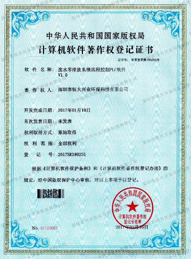• Remote control PLC software V1.0 for waste water zero discharge system