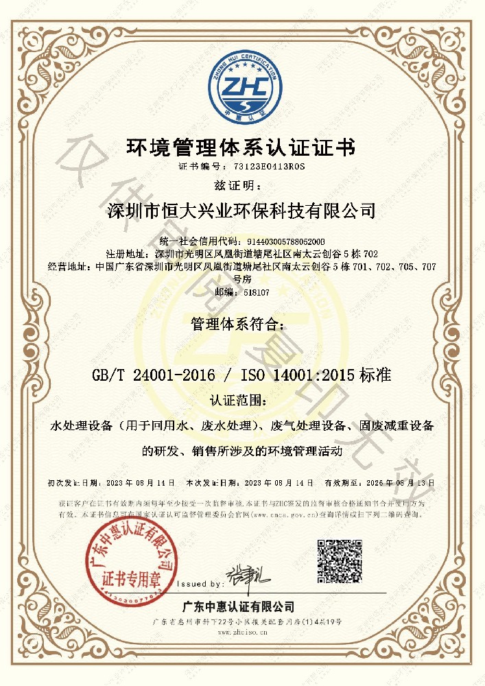 • 環(huán)境管理體系認(rèn)證證書