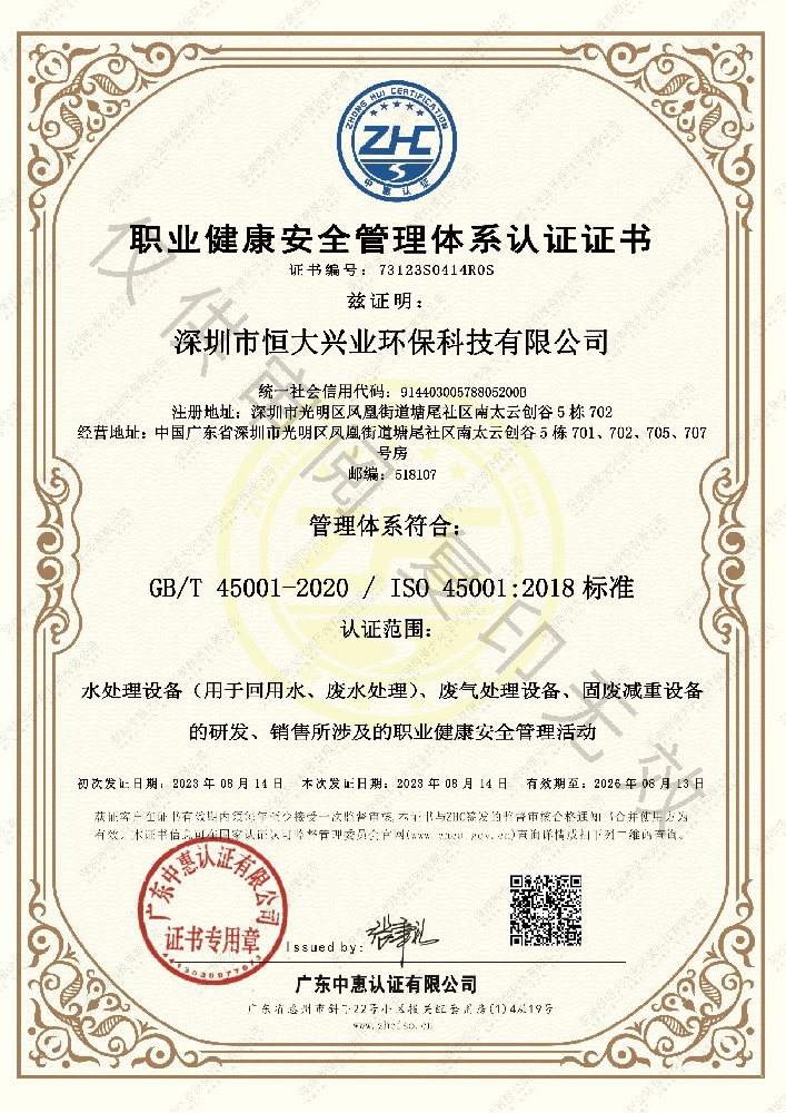 • 職業(yè)健康安全管理體系認(rèn)證證書